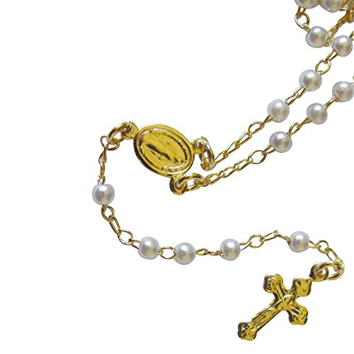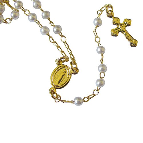 -. Title : Tiny Pearls Beaded Rosary with Gold Overlay Crucifix and Centerpiece Includes Our Lady of Grace Prayer Card Blessd By HIS Holiness