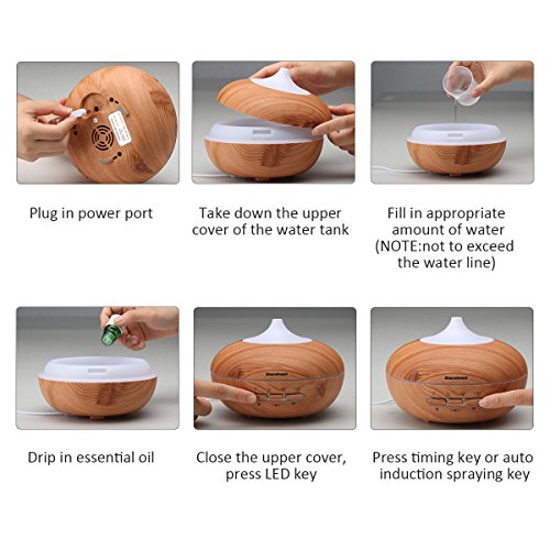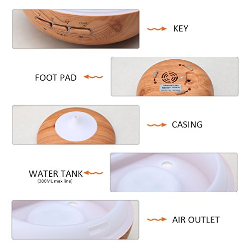 -. Title : Excelvan Auto-sensing 300ML Aromatherapy Ultrasonic Aroma Essential Oil Diffuser, Wood Grain Cool Mist Air Humidifier with Auto Shut-off for Office Home Bedroom Yoga Spa, 7 Color LED Lights Changing
