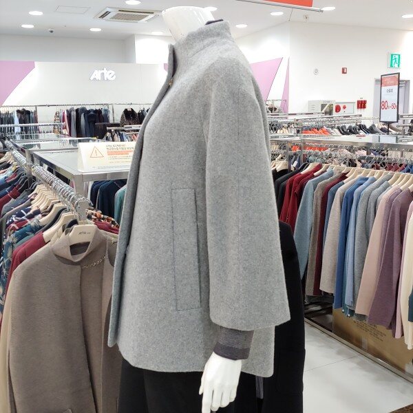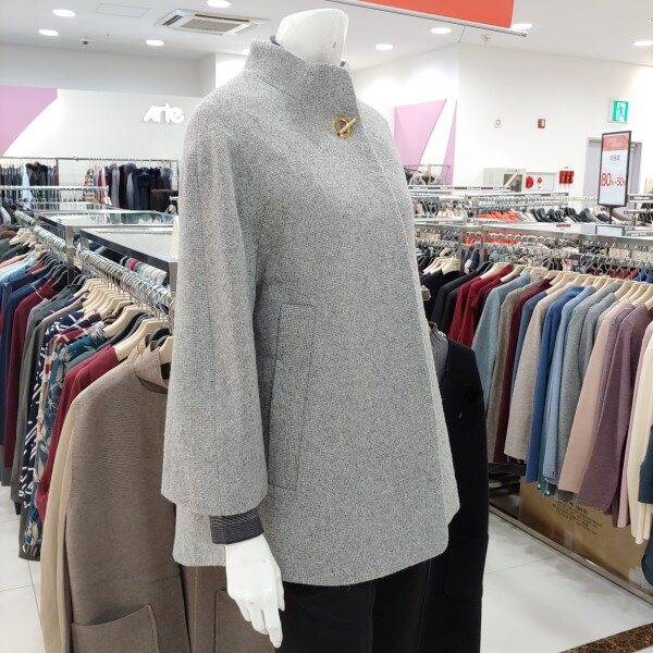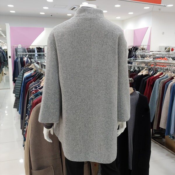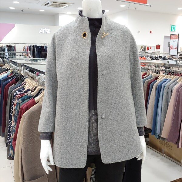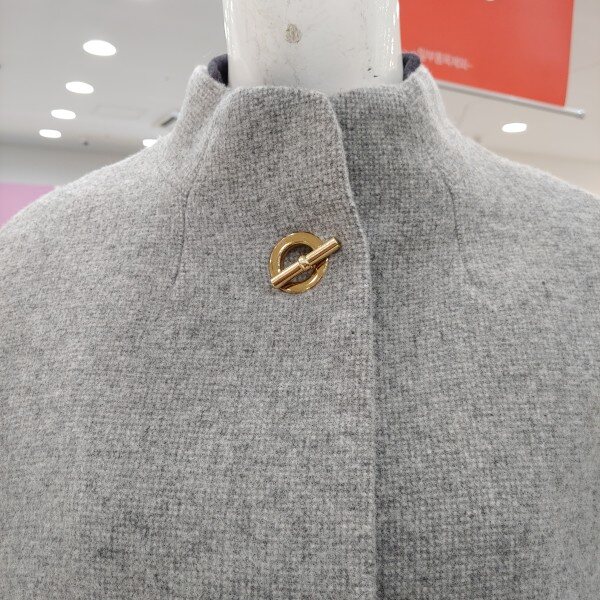 신상 제품으로 울 소재의 코트.금장장식으로 포인트를 준 큐티한 스타일의 코트.A라인 느낌의 멋스러운 반 코트.약간 여유핏으로 나와 편하게 착용 가능한 코트.