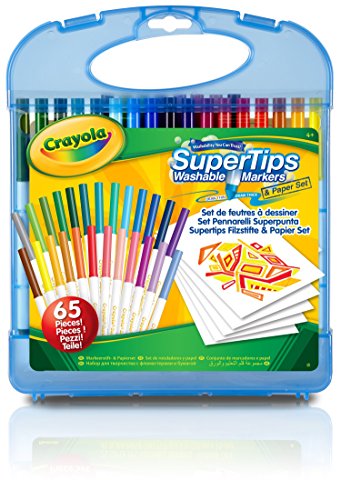 -. Binding : Toy -. Brand : Crayola -. Department : unisex-child -. EAN : 0885736058682 -. Feature : All-inclusive durable plastic case designed to hold Washable Super tips / A great gift to collect and carry their favorite Crayola sticks in an all-in-one storage solution with paper / Snap-fit design keeps sticks and paper in place / Hours of creative play / Perfect for travel and on the go -. IsAdultProduct : 0 -. ItemPartNumber : 04-5226-E-000 -. Label : Binney & Smith -. Manufacturer : Binney & Smith -. Model : 04-5226 -. MPN : 04-5226-E-000 -. PackageQuantity : 1 -. PartNumber : 04-5226-E-000 -. ProductGroup : Toy -. ProductTypeName : TOYS_AND_GAMES -. Publisher : Binney & Smith -. Studio : Binney & Smith -. Title : Crayola 25 Count Washable Super Tips Markers Kit -. UPC : 885736058682 -. Warranty : No Warranty