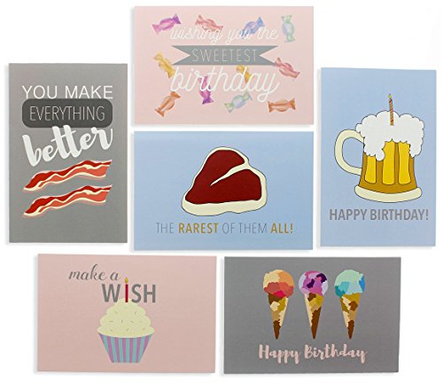 -. Title : Happy Birthday - 48 Birthday Cards- 6 Designs Bacon, Beer, Steak, Cupcake, Ice Cream & Candy - 48 Envelopes Included 4 x 6 inches