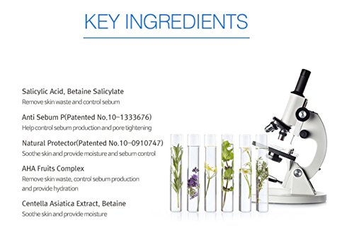 -. Feature : Tightens pores / Removes dead skin cells: Naturally derived AHA and BHA remove skin waste and dead skin cells / Sebum control and pore care through naturally derived ingredients / Patented ingredient soothes and moisturizes skin