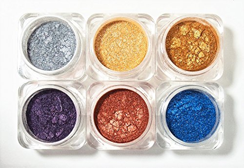 Naked Cosmetics Mica Pigments. Included: Six individual colors (each with their own lid) come in every collection / palette. Fill: 1.5gm per Color. What makes Naked Mica Pigments stand out? Simply put...Our Mica Pigments are the highest grade mica available, giving you extremely High "pay-off" on application. Mica Pigments are the COLOR from Makeup. Naked Cosmetics Colors Collections contain No Talc, Oils, Waxes, or Fillers of any kind. It is 100% color to give you a pure product that is Non-allergenic, Non-perishable, and simply put...a rich, intense color. Each color can be used for Eye Shadow, Eye Liner, Lip Stick, Blush, Bronzer, Temporary Hair Highlight and Much, much More. * Pro Tip: With Naked...A little goes a LONG way. Don't sacrifice quality...Buy the best...Get Naked. *see "Basic Application" for application tips. We Recommend using Naked Eye Shadow Primer- Makes mica powders water proof. (Sold Separately) We Also Recommend using Clear Lip Base for making many shades of lipstick. (Sold Separately) Pro Tip: Use extra primer for more of a matte finish.Feature