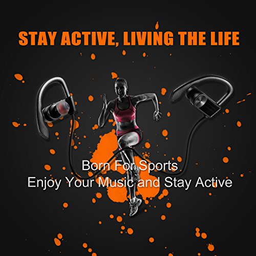 -. Title : Blutooth Headset, Headphone Wireless Sport Over-Ear Secure Comfort Fit, Strong Heavy Bass Crystal Clear Sound, Water Resist IPX4 Earbud, iPhone, Android Compatible, Noise Cancelling Mic