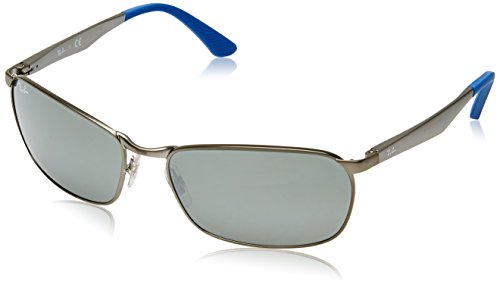 Ray-Ban METAL MAN SUNGLASS - MATTE GUNMETAL Frame GREEN MIRROR SILVER Lenses 62mm Non-Polarized