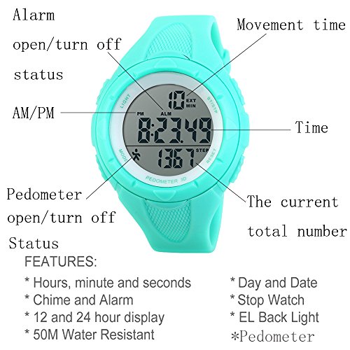 TOPCABIN Children Waterproof Sports Watch Step Gauge Watch Electronic Outdoor Watch Light Blue