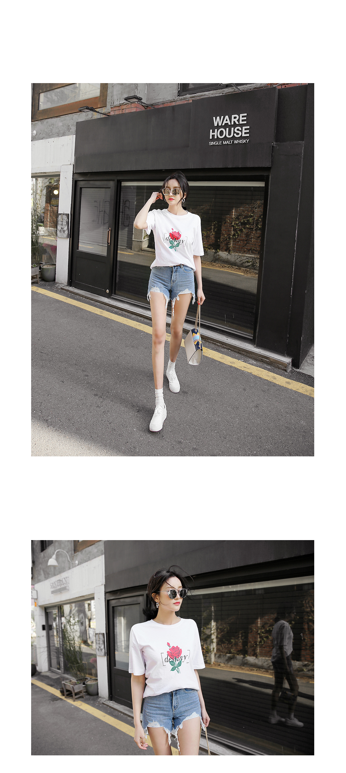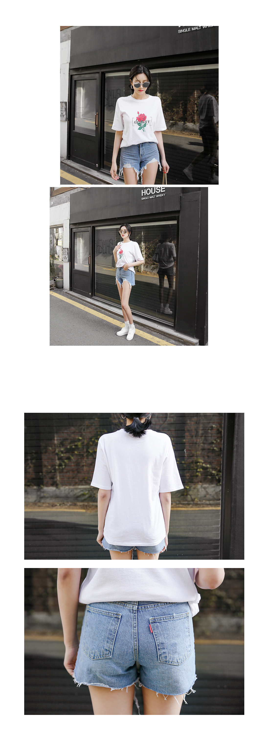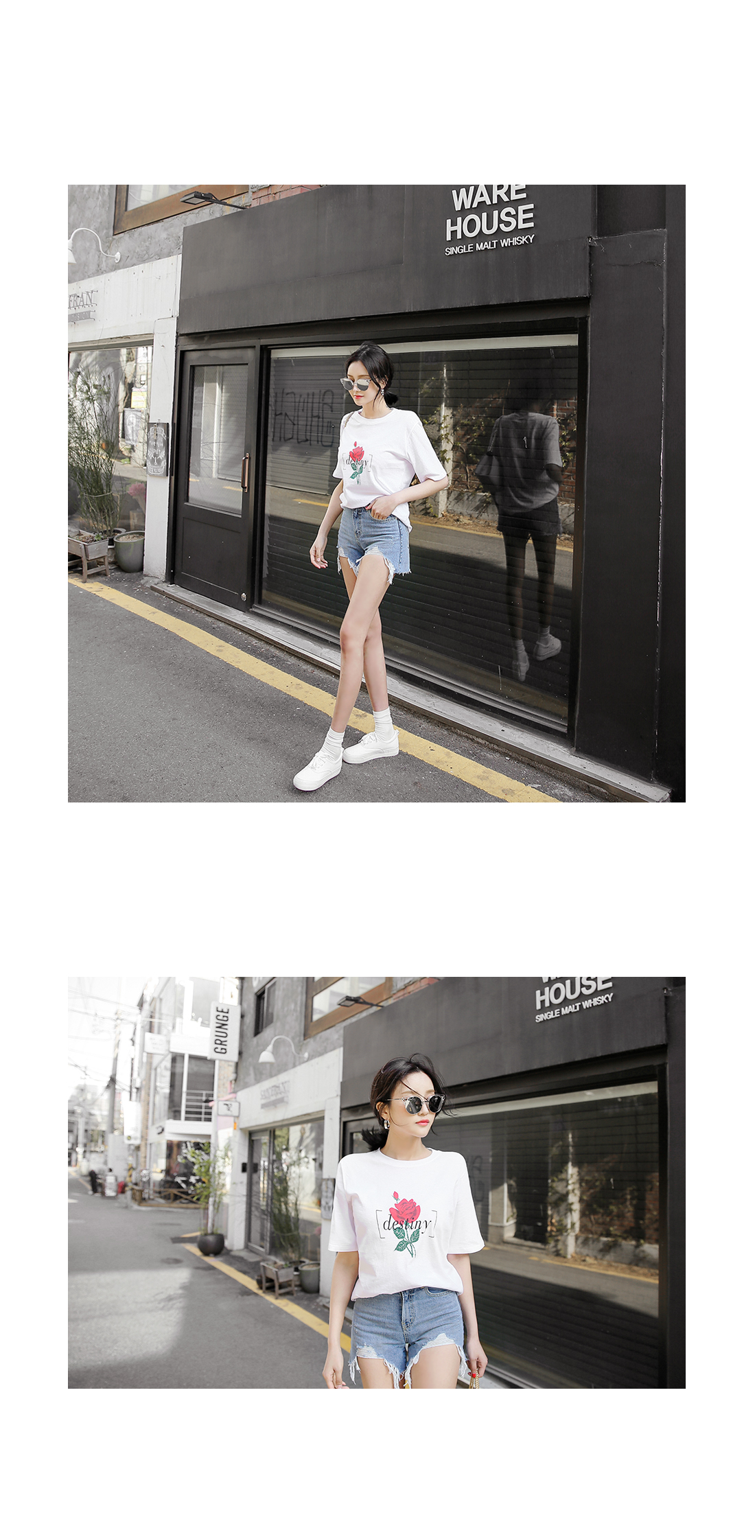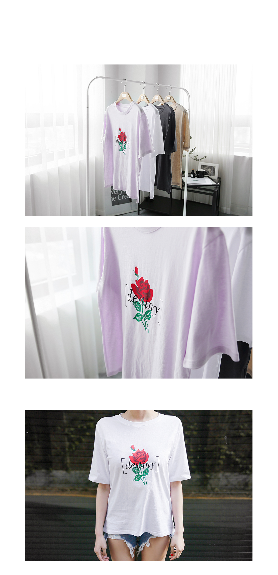 베이직한 티셔츠에 로즈 프린팅이 가미되어 스타일리시한 분위기가느껴지는 티셔츠랍니다~^^적당한 두께감과 핏감으로 누구든지 편안한 착용감과 계절에 구애없이 레이어드룩을 연출할 수 있어요~팬츠,스커트 등 다양한 아이템들과 코디매치할 수 있는 활용도 높은 티셔츠 아이템이예요~로즈프린팅으로 봄 시즌에 알맞은 코디룩을 연출할 수 있는 티셔츠랍니다~