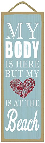 - Beach Inspired Wooden Sign Plaque; My body is here but my heart is at the beach