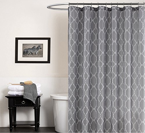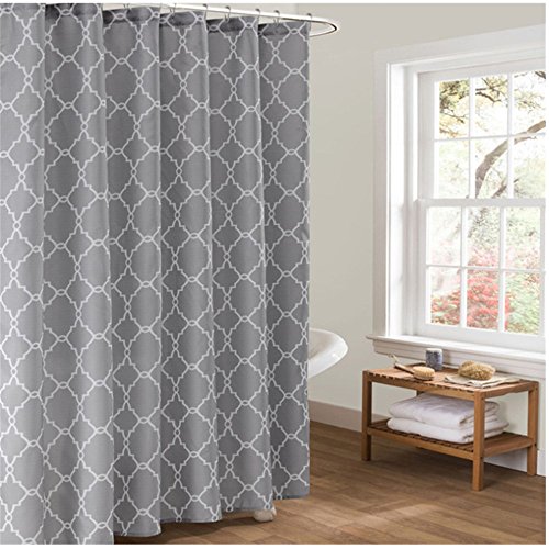 Moroccan Trellis Fabric Shower Curtain,Waterproof/Mildew Resistant Polyester Fabric Shower Curtain with 12 Hooks 71x71 inches Grey