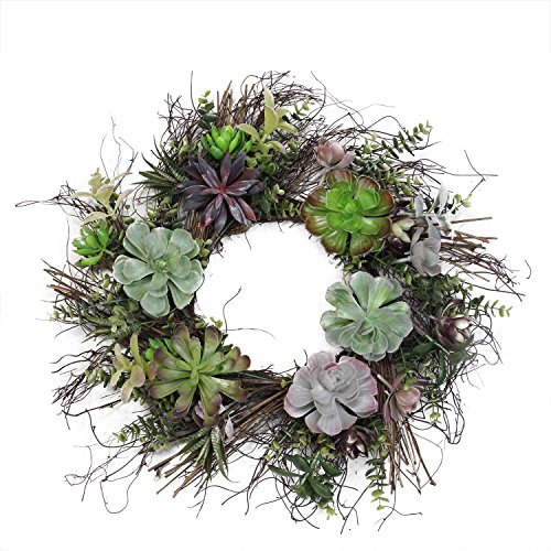 Northlight Decorative Succulent Mix Spiral Vine Artificial Wreath Unlit, 22", Green