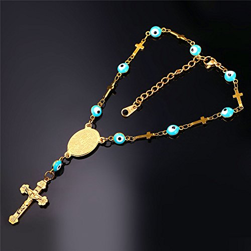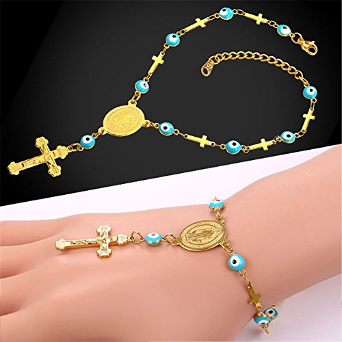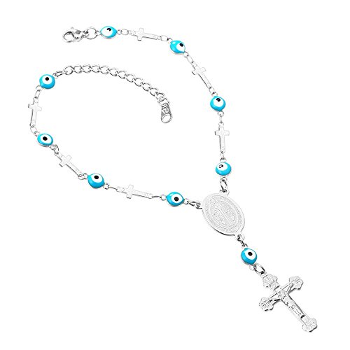-. Title : U7 Catholic Christian Jewelry Evil Eye Cross Chain Rosary Bracelet