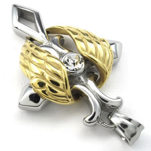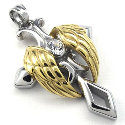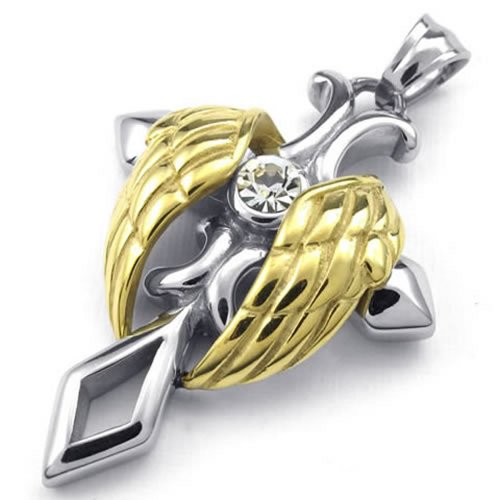 -. Title : KONOV Stainless Steel Mens Womens Angel Wing Cross Pendant Necklace, 24 inch Chain