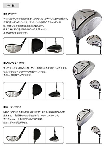 セット内容:ウッド3本(1W・3W・UT)、アイアン6本(6I・7I・8I・9I・PW・SW)、パター1本