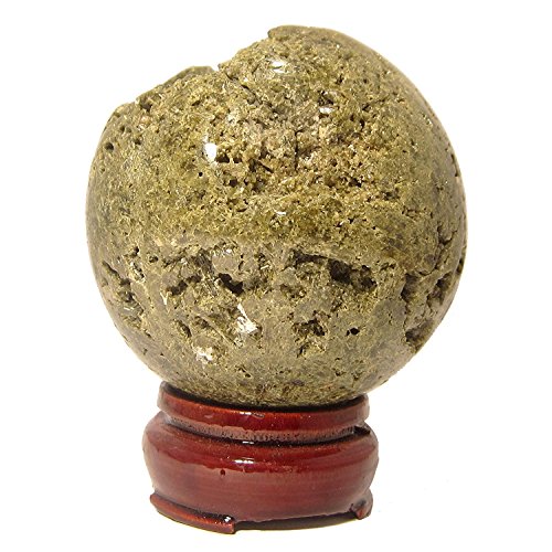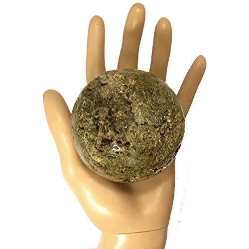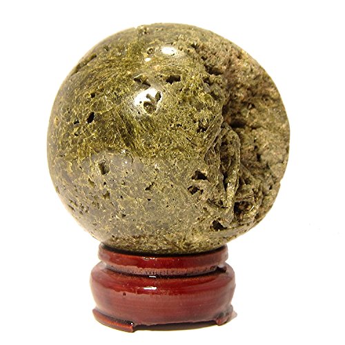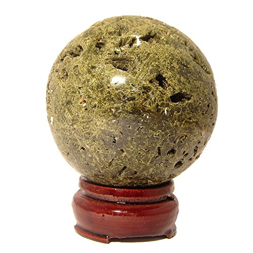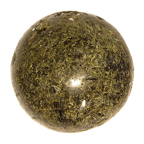 One-of-Kind: Natural Epidote is polished into your new crystal healing ball. This is an olive green crystal with white mineral inclusions. The Epidote cluster is polished into a 2.9" wide sphere shape, but retains a lot of its original crystal caves. The crystal cavities include small Epidote points in their natural formation.