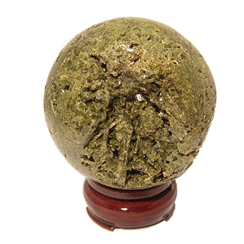 Epidote Ball 03 Green Cluster Crystal Sphere Gemstone Mineral 2.9" (Wood Stand, Gift Box)