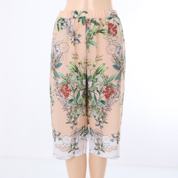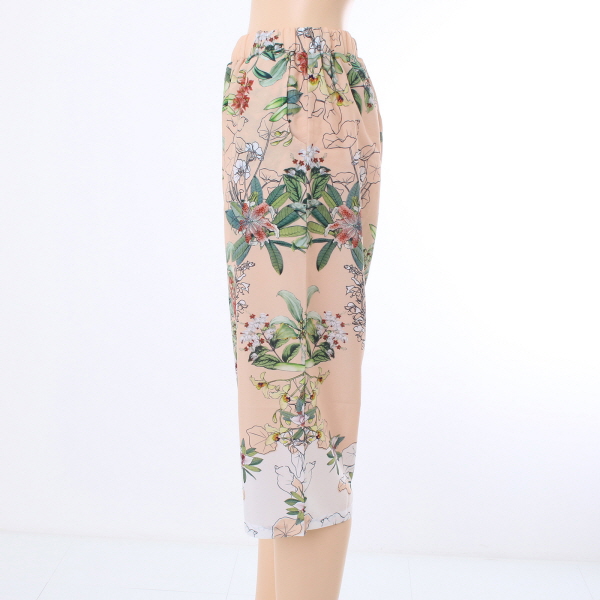 피치 컬러톤의 꽃 나염 바지 입니다.