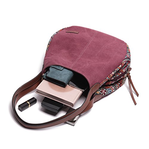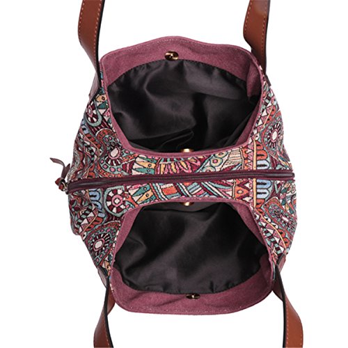 Shoulder Bag for Women, Brenice Bohemia Large Capacity Canvas Floral Handbag Totes Purses