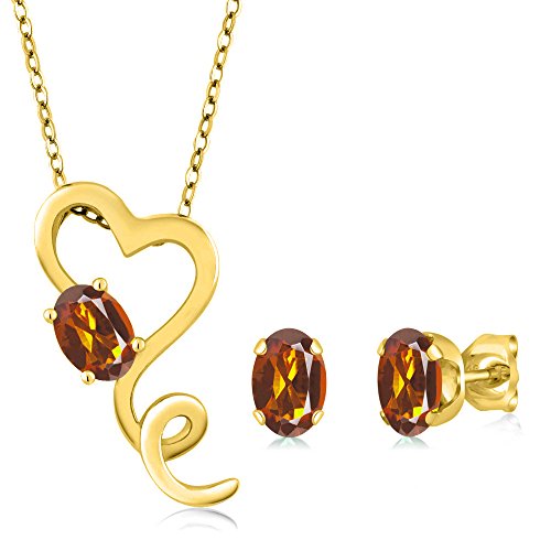 -. Title : 1.80 Ct Oval Orange Red Madeira Citrine 14K Yellow Gold Pendant Earrings Set