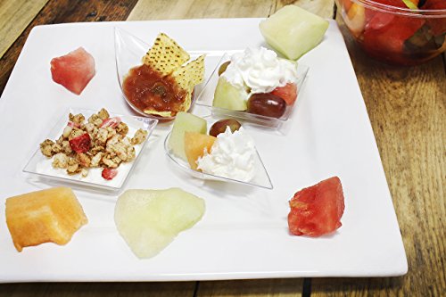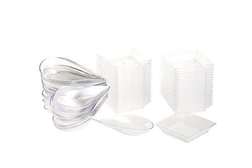- SLEEK: Make sure any gathering of friends, family and food looks stylish and fancy with this Tear Drop-style Appetizer Dessert Spoon and Transparent Plate Set