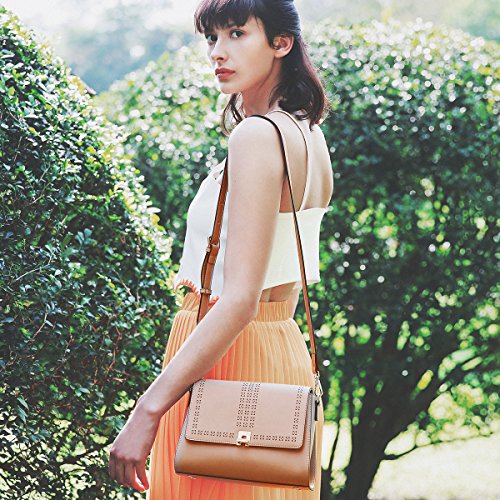 Kadell Women Vintage Leather Messenger Bag Hollow Out Small Flap Bag Crossbody Shoulder Bag