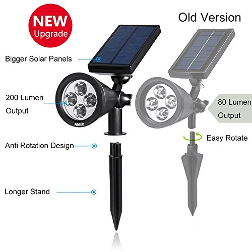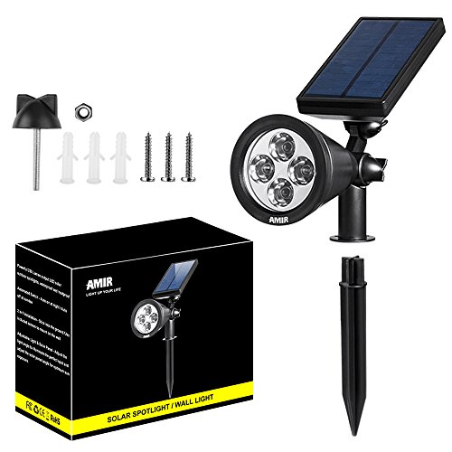 AMIR 2 in 1 Solar Spotlights, Upgraded Solar Garden Light Outdoor, Waterproof 4 LED Landscape Lighting, Adjustable Solar Wall Lights with Auto On/ Off for Yard Driveway Pathway Pool Tree Patio (White)