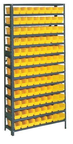 Edsal PB306 36-Inch Wide by 12-Inch Deep by 75-Inch High Thirteen-Shelf 96-Opening Plastic Bin Shelving Unit, Grey/Yellow