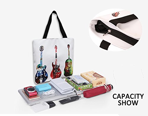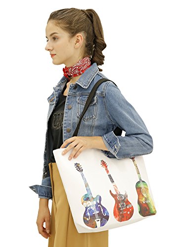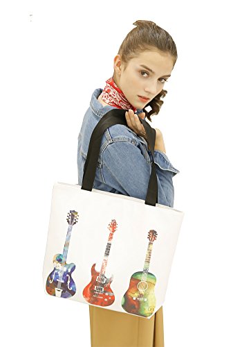 Womens Top Handle Bags Tote Bag with Colorful Guitar Patterns By MissShorthair