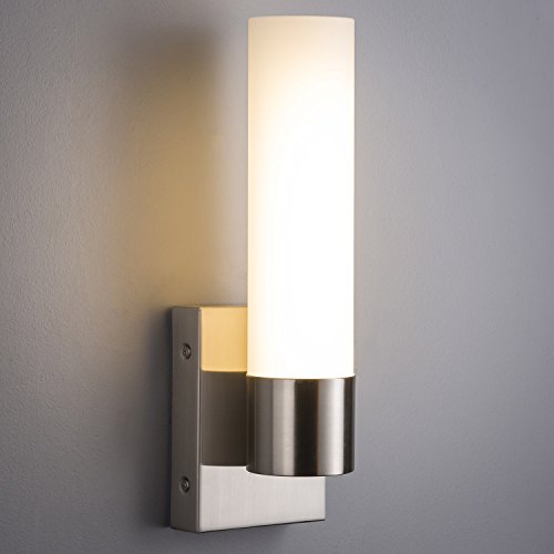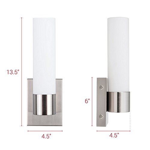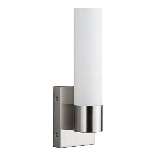 CONTEMPORARY DESIGN - brushed nickel fittings and a white frosted glass cylinder combine for a versatile aesthetic that is ideal for a variety of decor schemes