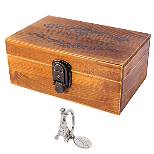 SiCoHome Treasure Chest with Lock and Key,Vintage Wood Decorative Box for Gifts,Storage and Home Decor