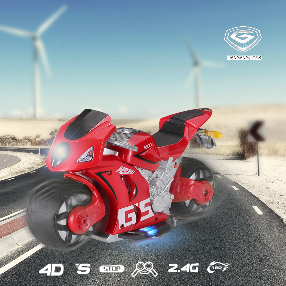 This 4D motorcycle is 1/8 full scale manipulation, and it combines with gravity induction, so it can full function simulated remote control, which can let you experience fantastic feeling of racing. Moreover, its simulation shock devices look and flywheels stability control technology really caught people's eyes. It sure be a perfect gift for your children.