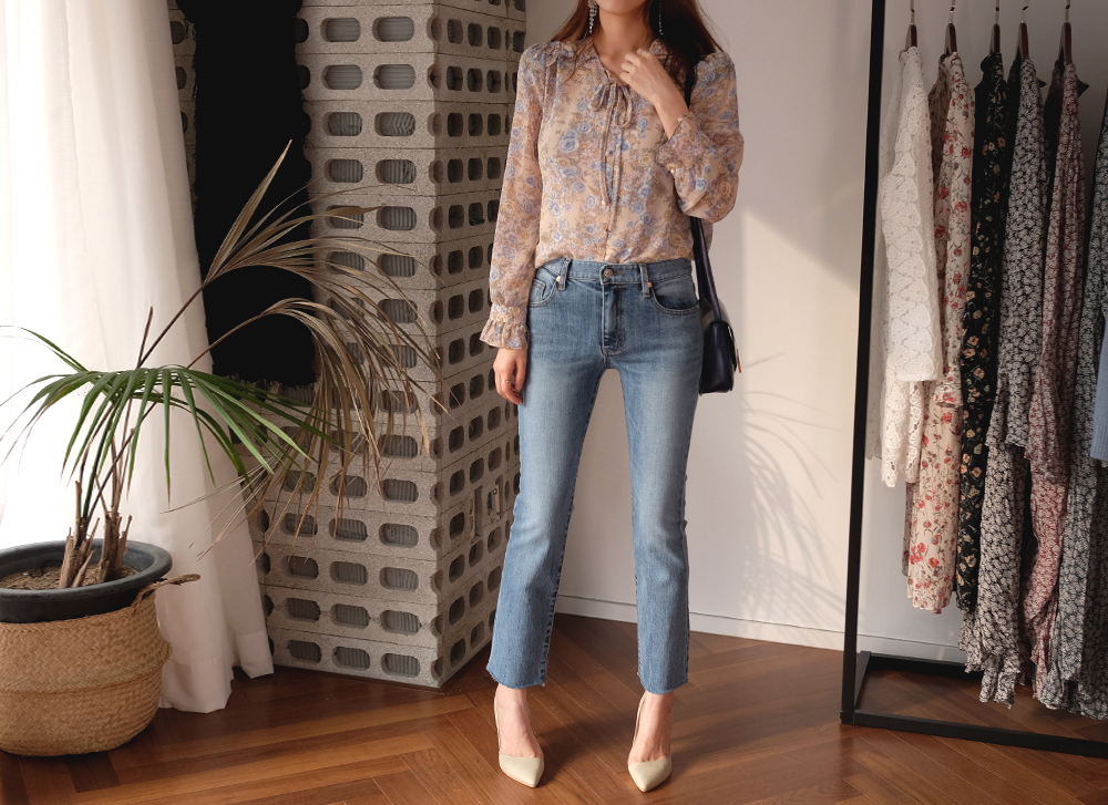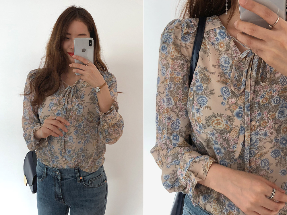 수채화처럼 물든 듯 파스텔톤의 플라워패턴이 매력적인 블라우스:D