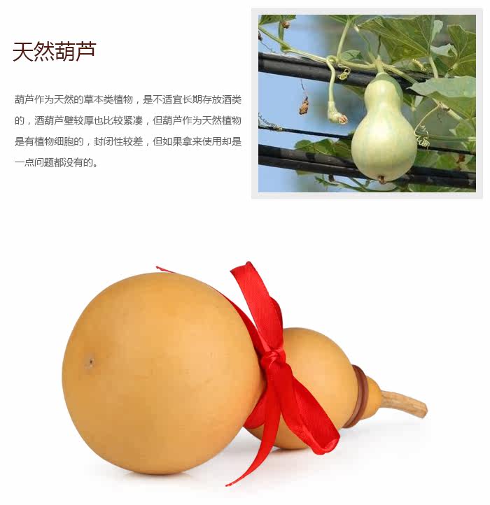 "Compendium of Materia Medica" record: fitted out with a gourd of wine have eyesight relieve inflammation, aid digestion medicinal properties, remove the fire eyesight aid digestion. Hyacinth as a natural herbal plants, it is not appropriate for long-term storage of wine, but as a natural gourd plant is a plant cell, fully mature wine gourd, leather thick, compact, durable, using them is no problem at all the.