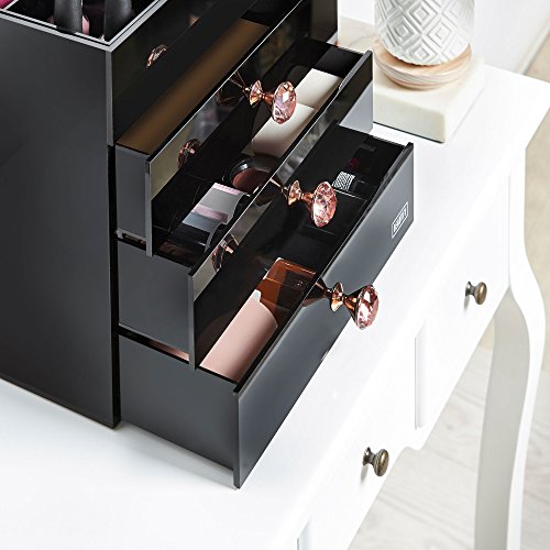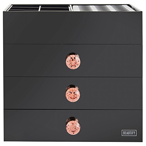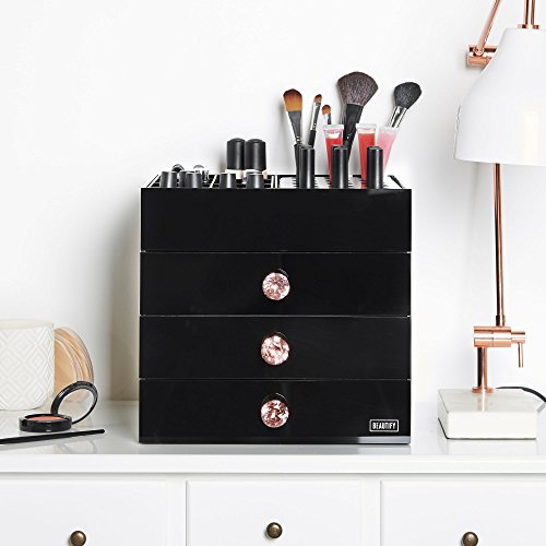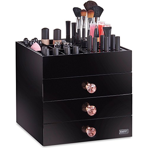 Beautify Large 4 Tier Black Acrylic Cosmetic Makeup Storage Cube Organizer with 3 Drawers and 6 Upper Storage Compartments