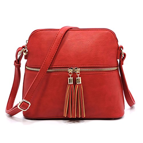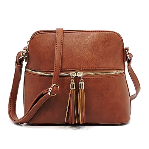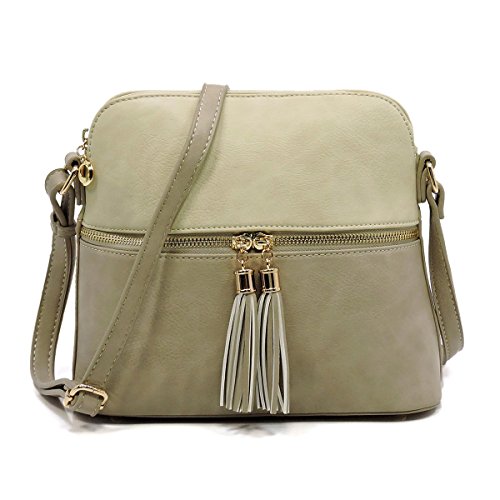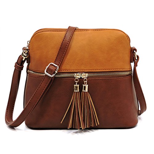 Tassel Zipper Colorblock Dome Crossbody Bag.
