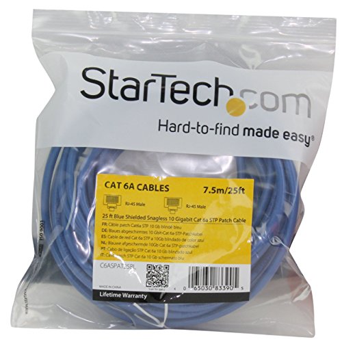 StarTech.com 25' Cat6a Patch Cable, Shielded STP, Blue C6ASPAT25BL