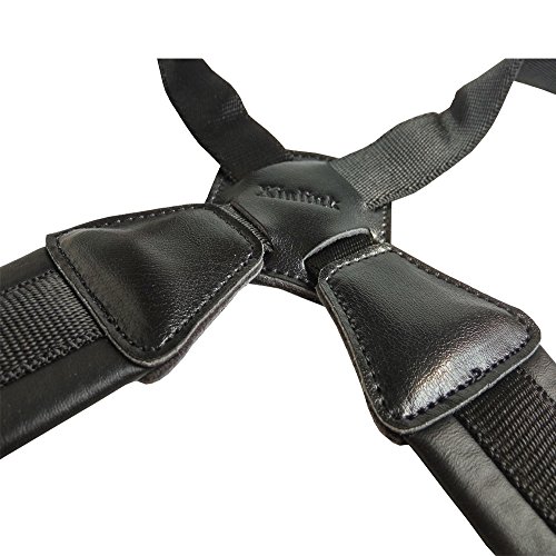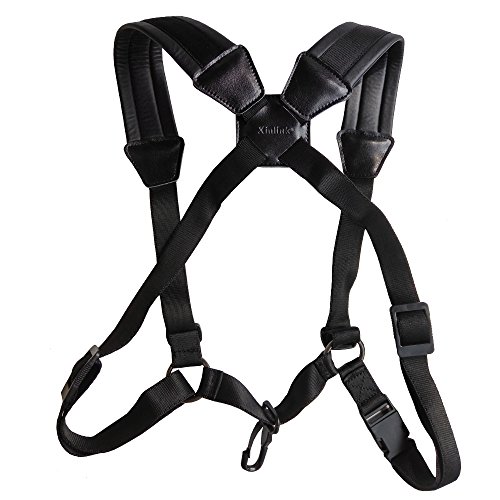 Xinlink Professional Black Leather Saxophone Strap Double Shoulder Padded Harness Adjustable for Alto Tenor Soprano Baritone Sax Music Instrument