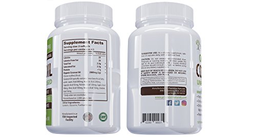 -. Title : Organic Coconut Oil Capsules/Pills 2000mg Virgin Cold Pressed Non GMO for Weight Loss, Extra Hair Growth and Healthy Skin. Unrefined Pure Coconut Oil Best Source of MCFA. 120 count/bottle