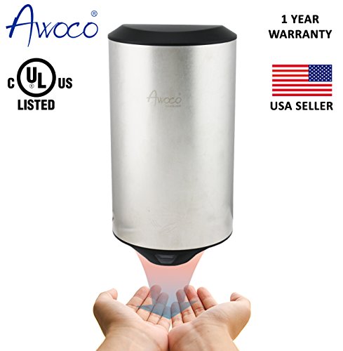 Awoco Stainless Steel 1150W 110V Automatic High Speed Commercial Hand Dryer, UL Listed, 1 Year Warranty (Round)