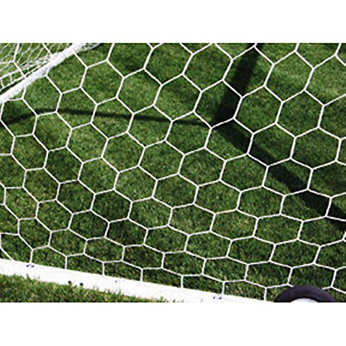 Studio : First Team Sports Inc Publisher : First Team Sports Inc Binding : Misc. Product Description Soccer nets are sized as follows: Height x Width x Top Depth x Bottom Depth The First Team White Soccer Net gives you everything you need to keep the game going. Having a stash of replacement nets on hand is a must for those times when the going gets rough, and this net fills the bill, with professional-grade high tenacity polypropylene material. Available in a range of sizes to fit any soccer goal brands, these nets are made with non-abrasive knotless construction and a pro-style 3mm hexagonal mesh. A heavy duty perimeter attachment rope is also included. Nets are not returnable once opened. High tenacity polypropylene construction. Professional white color. 3mm hexagonal mesh. Non-abrasive knotless design. Available in your choice of sizes. 0