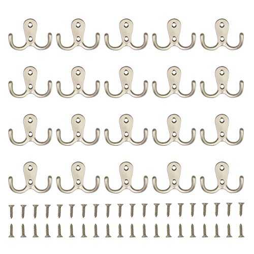 HOVEOX 20 Pcs Double Prong Robe Hook Retro Towel Cloth Hanger Wall Hat Jewelry Hooks Rustproof Rustic Hooks Heavy Duty Hardware Decorative Utility Hooks & 40 Pcs Screws & a Free Screwdriver, Silver