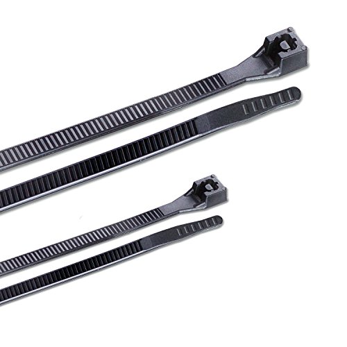 Calterm 73326 DoubleLock Cable Tie, 4 & 8 Inch. 18 & 45 lbs. Tensile Strength, Wire / Cord Management Industrial and Household Use, Nylon Zip Tie, 200 Pk., UV Resistant Black