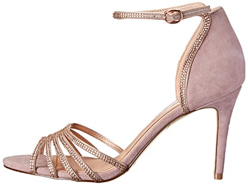 Adjustable ankle strap with buckle closure. Man-made footbed and lining. Wrapped heel. Man-made outsole. Imported.