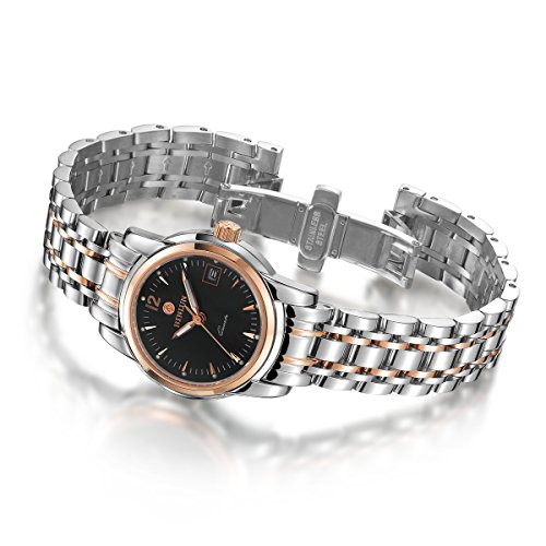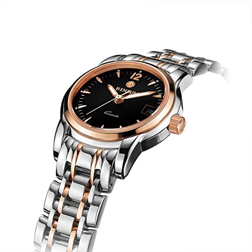 - 【Scratch resistant】synthetic sapphire crystal, 18k rose gold plated stainless steel case & 2 tone bracelet