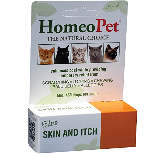 -. Binding : Misc. -. Brand : HomeoPet -. Feature : Relief for itchy, irritated skin / Safe and gentle homeopathic formula / Easy to administer liquid drops can be placed directly in mouth, on food or treats, or in water / Made in the USA / This item qualifies for free-shipping on Amazon.com for! Expires 7/13 11:59pm -. Label : HomeoPet -. Manufacturer : HomeoPet -. MPN : 04722 -. PackageQuantity : 1 -. PartNumber : 04722 -. ProductGroup : Pet Products -. ProductTypeName : PET_SUPPLIES -. Publisher : HomeoPet -. Studio : HomeoPet -. Title : HomeoPet Feline Skin & Itch Natual Cat Coat Enhancer