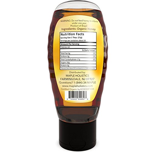 -. Binding : Health and Beauty -. Brand : Maple Holistics -. Department : unisex-adult -. EAN : 0806810286906 -. Feature : 100% NATURAL HONEY ORGANIC is nature's sweetener for tea and beauty treatment for skin + hair. Our beehive byproduct is full of vitamins + antioxidants to promote health + wellness even weight loss. / NATURAL ENERGY BOOST Pure raw honey is not only flavorful, but provides you with more energy because of the balance of carbohydrates and vitamins such as Calcium Zinc Vitamin B6 Riboflavin + Vitamin C. / ANTI AGING BEAUTY ELIXIR honey is a popular ingredient in natural skin care, hair care, moisturizers + facial scrubs. It is a humectant which helps keep your skin hydrated + leaves it soft + supple. / USDA ORGANIC + KOSHER USA Grade A certified Kosher. This all natural honey is packaged in an eco-friendly BPA free bottle. Our aim is to produce a honey that is both fresh + full of flavor. / 100% MONEY BACK GUARANTEE This organic honey is USDA and Kosher Certified. It contains no chemicals or preservatives and comes with a 100% money back guarantee. -. IsAdultProduct : 0 -. Label : Maple Holistics -. Manufacturer : Maple Holistics -. MPN : MapleHolisticsHoney -. PackageQuantity : 1 -. PartNumber : MapleHolisticsHoney -. ProductGroup : Health and Beauty -. ProductTypeName : HEALTH_PERSONAL_CARE -. Publisher : Maple Holistics -. Studio : Maple Holistics -. Title : Pure Raw Honey Natural USDA Organic Certified Kosher Honey for Eating - All Natural Sweetener for Tea with Vitamin C - Increases Energy - Boosts Immunity - Honey for Skin Care - Acne Beauty Treatment -. UPC : 806810286906
