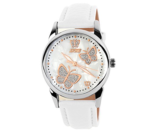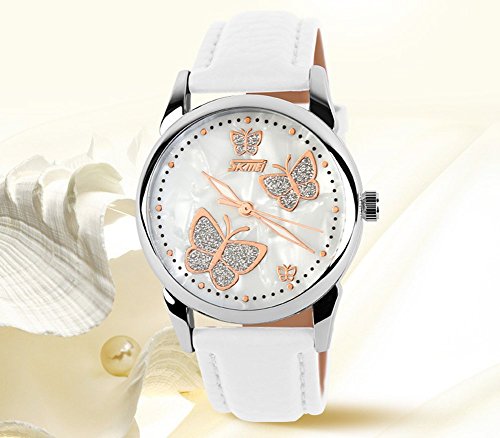 -. Title : Scheppend Lady Fashion Butterfly Pattern Quartz Wrist Watch White