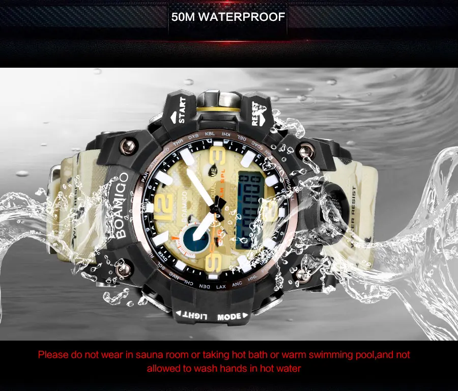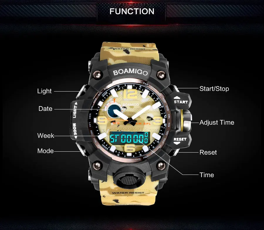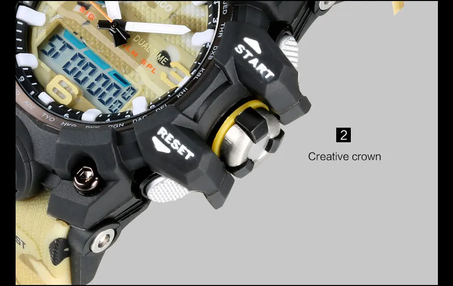 Feature:Water Resistant,Shock Resistant,Stop Watch,Complete Calendar,Multiple Time Zone,Chronograph,Perpetual Calendar,Auto Date,LED display