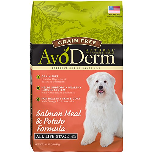 One (1) 24 Pound Bag: AvoDerm Natural Grain Free Dry Dog Food, Salmon Meal & Potato Formula