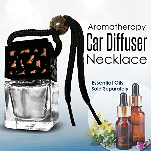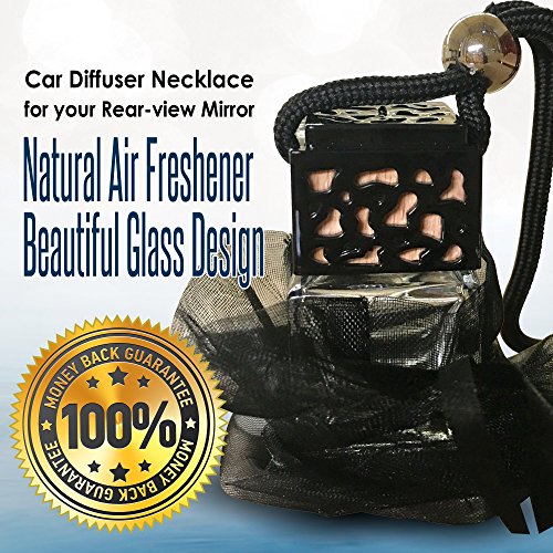 Black Aromatherapy Car Diffuser Necklace for your Rear-view Mirror for Essential Oils and Fragrance, Natural Air Freshener, Beautiful Glass Design