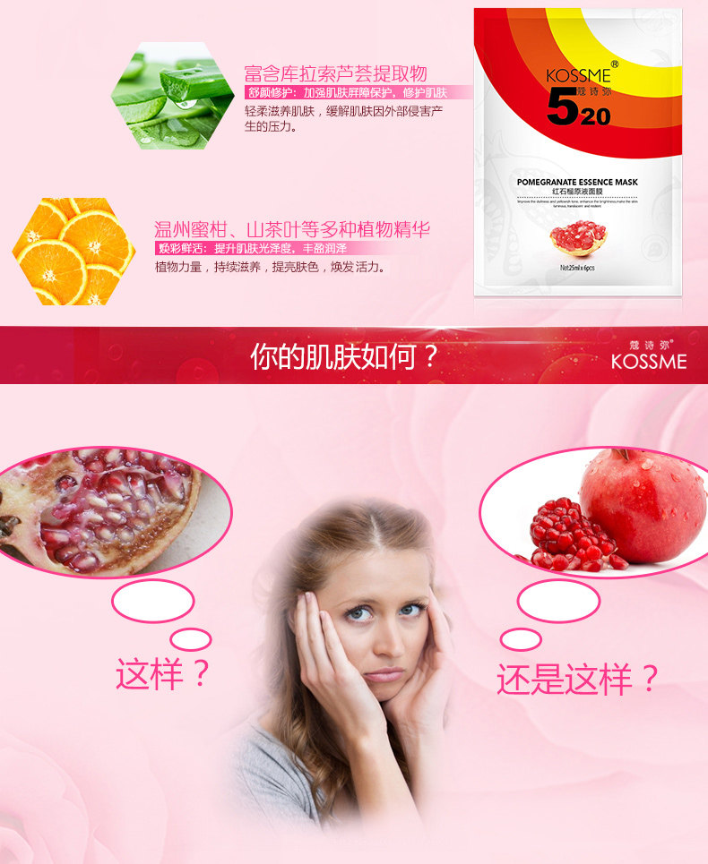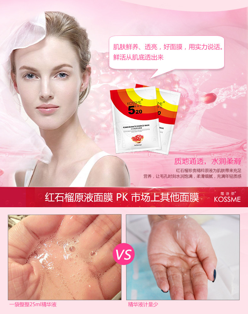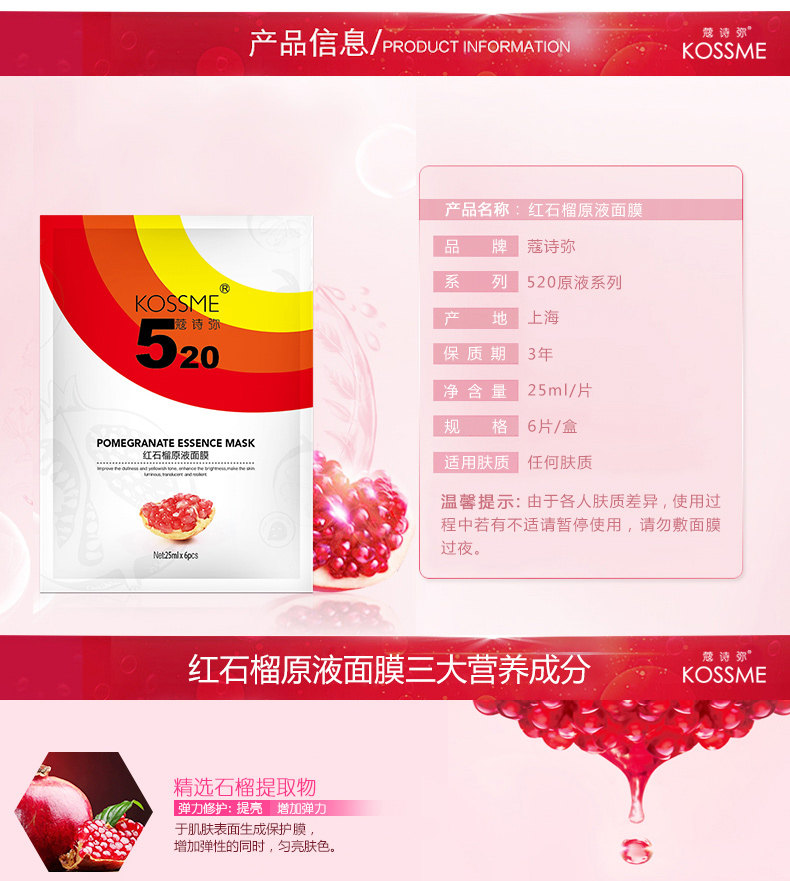 蔻诗弥 红石榴原液面膜贴6片 补水保湿提亮肤色收缩毛孔护肤品